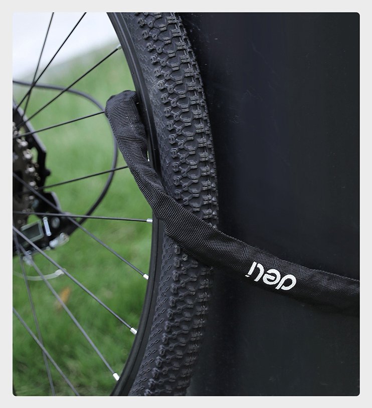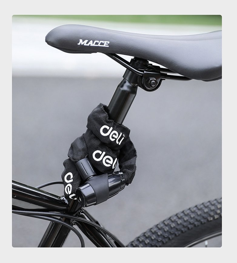 Κλειδαριά ποδηλάτου της Deli με ανθεκτική ατσάλινη αλυσίδα και πρακτικό μήκος, για την προστασία του ποδηλάτου σας από κλοπές.