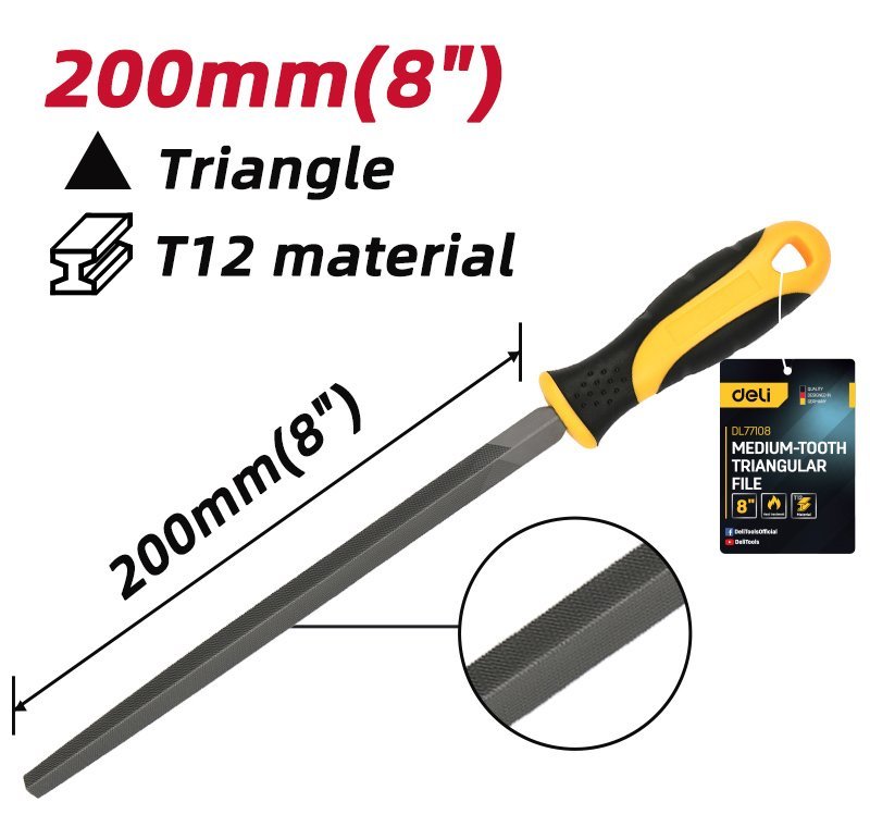 DELI λίμα τριγωνική DL77108 με αντιολισθητική λαβή, μετάλλου, 200mm