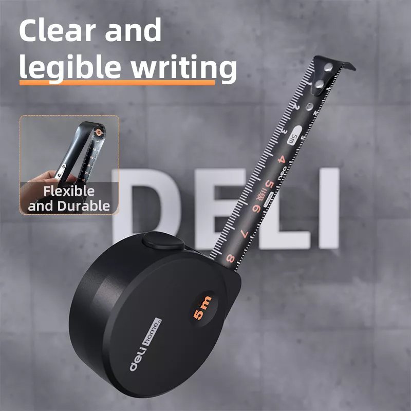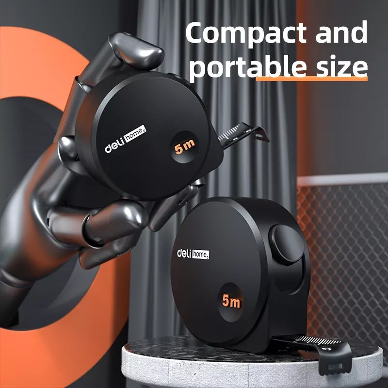 Μέτρο της Deli με μετρικό σύστημα αρίθμησης, συνολικού μήκους 5m και πλάτους 19mm.