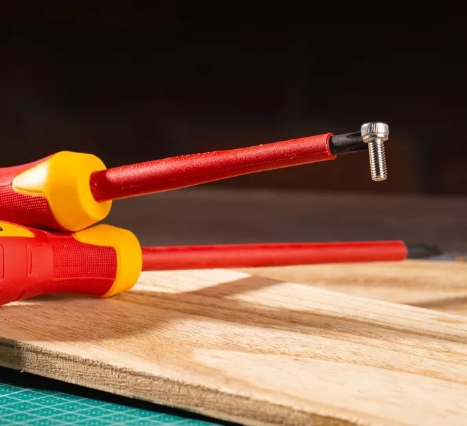 Σετ κατσαβιδιών ηλεκτρολόγου της Deli που αποτελείται από 2 ίσια κατσαβίδια, 2 σταυρωτά και 1 δοκιμαστικό κατσαβίδι.