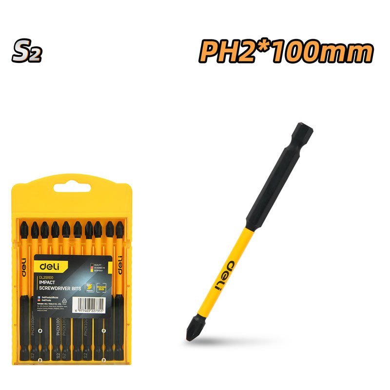 DELI σετ μύτες κατσαβιδιού DL251100 για δράπανο, σταυρωτές, PH2x100mm, 10τμχ