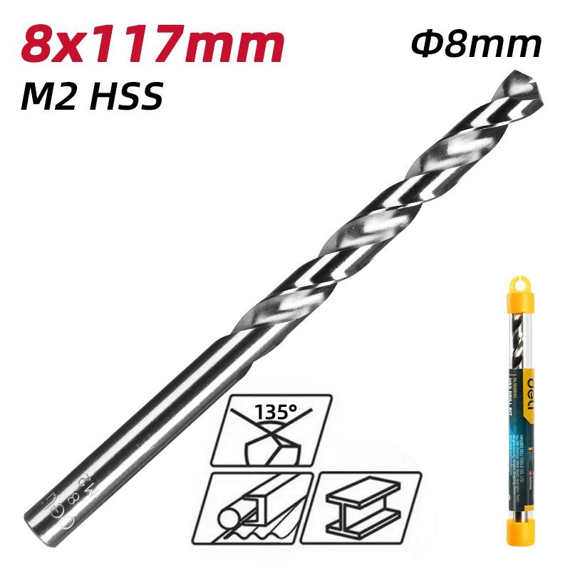 DELI τρυπάνι DL16080G για μέταλλο, M2 HSS, 8x117mm, κυλινδρικό
