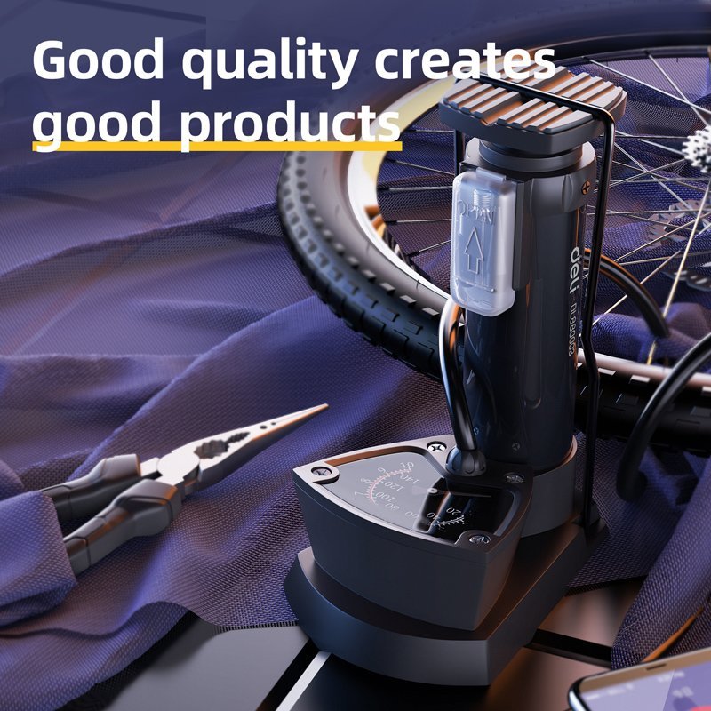 Τρόμπα ποδιού της Deli ιδανική για το φούσκωμα ελαστικών αυτοκινήτου/μοτοσυκλετών/ποδηλάτων, μπάλες ή άλλων φουσκωτών ειδών. Διαθέτει μανόμετρο για ακριβή έλεγχο της πίεσης και ανθεκτική κατασκευή με άνετο πετάλι για σταθερή χρήση.