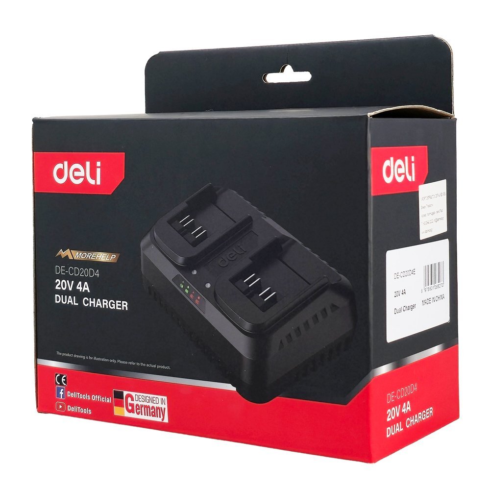 DELI φορτιστής μπαταριών εργαλείων μπαταρίας DE-CD20D4, 2 θέσεων, 20V 4A