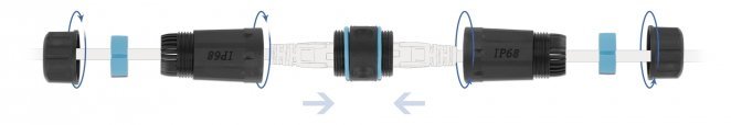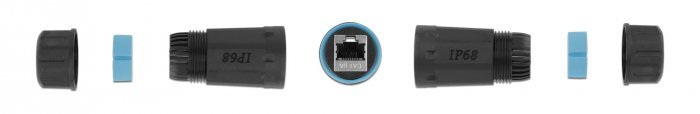 Αδιάβροχος αμφίδρομος σύνδεσμος καλωδίου RJ45 Cat.6A ιδανικός για συνδέσεις ethernet σε εξωτερικούς χώρους.