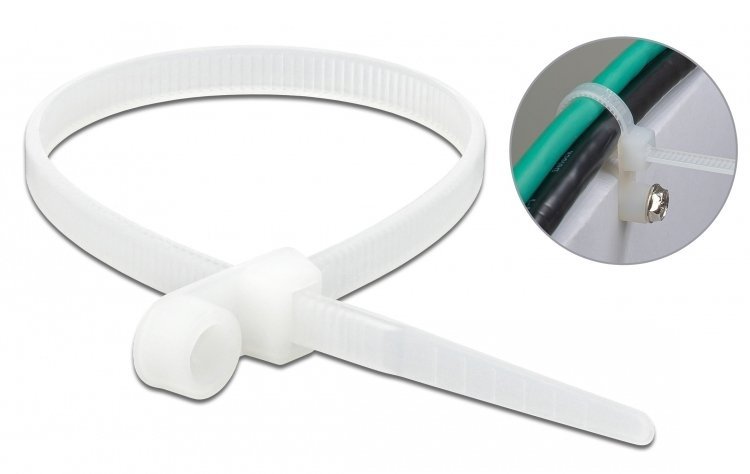 DELOCK Δεματικά καλωδίων 18948 με οπή στερέωσης, 400×7.6mm, λευκά, 10τμχ