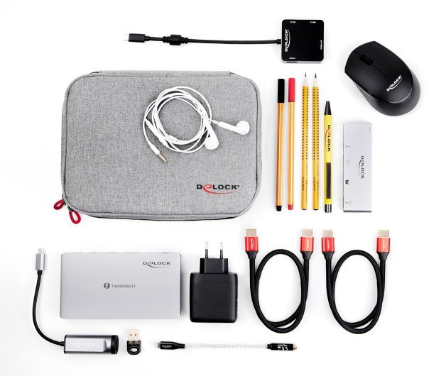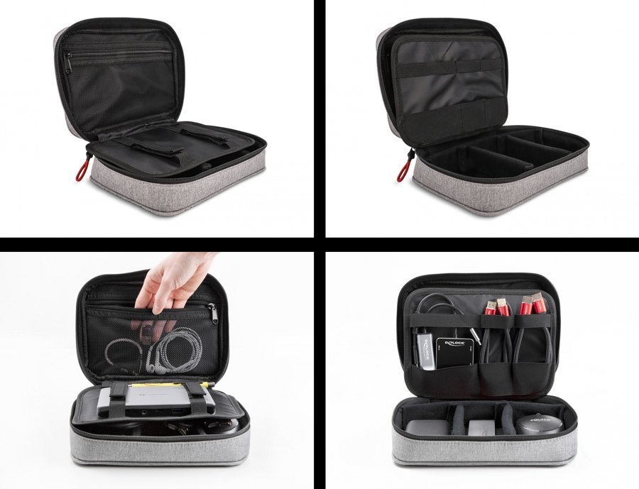 Αυτή η πρακτική θήκη οργάνωσης της Delock όχι μόνο εντυπωσιάζει με τον μοντέρνο σχεδιασμό της αλλά επίσης προσφέρει αρκετό χώρο για την αποθήκευση διαφόρων αξεσουάρ όπως καλώδια, power bank, σκληρούς δίσκους, ακουστικά και άλλα.