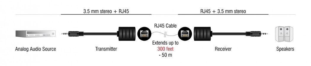 DELOCK audio extender 87858 3.5mm σε 3.5mm, μέσω καλωδίου RJ45, έως 50m