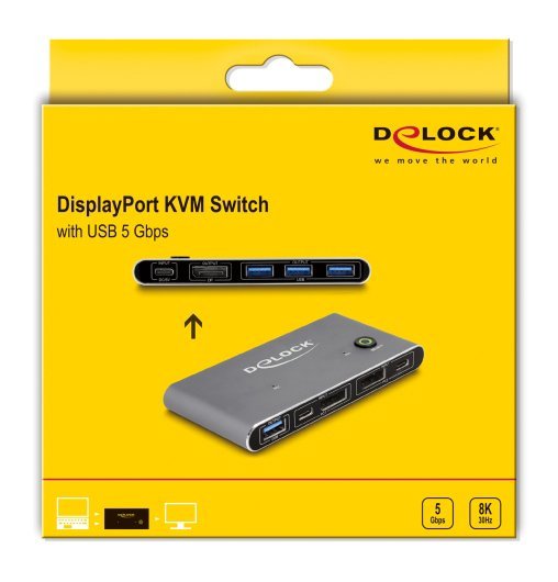 Αυτό KVM switch της Delock είναι μια βολική λύση για τη σύνδεση δύο υπολογιστών με έξοδο DisplayPort σε μια οθόνη DisplayPort.