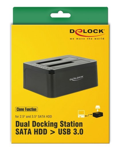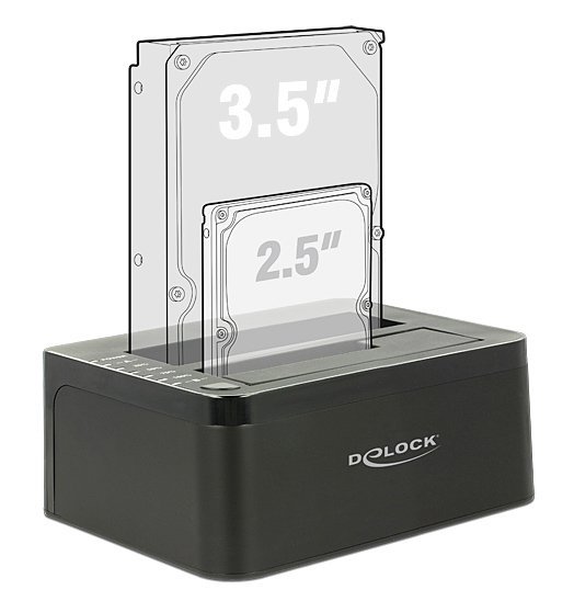 Αυτό το docking station της Delock επιτρέπει την σύνδεση έως δύο 2.5" ή 3.5" SATA HDD ή SSD σε έναν υπολογιστή μέσω θύρας USB.