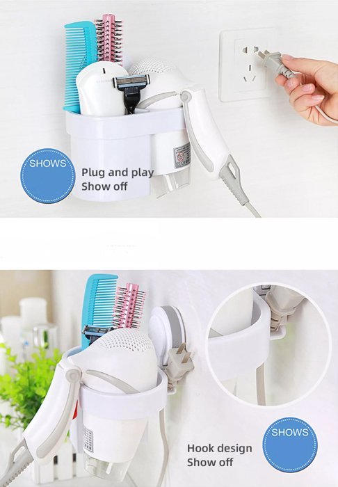 Βάση της Ecoco με μια θήκη για οδοντόβουρτσες, οδοντόκρεμες ή αλλά μικρά αντικείμενα υγιεινής και μια θήκη για σεσουάρ μαλλιών με ειδική υποδοχή για το καλώδιο. Επιδεικνύει ιδιαίτερη αντοχή και μπορείτε να τοποθετήσετε σε αυτήν αντικείμενα βάρους έως και 5 κιλά. Είναι συμβατό με τους περισσότερους τύπους σεσουάρ ενώ η τοποθέτηση της γίνεται εύκολα με αυτοκόλλητο κλιπ σε οποιαδήποτε επίπεδη επιφάνεια.