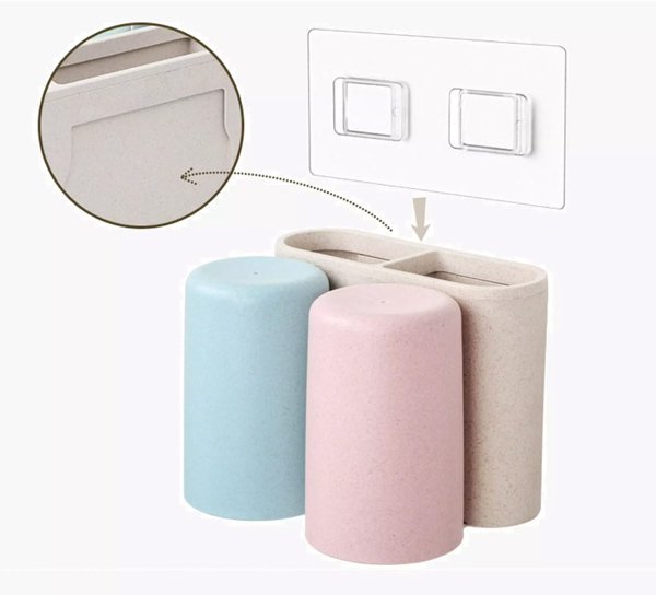 Βάση οδοντόβουρτσας με 2 ποτήρια της Ecoco και κομψή εμφάνιση, κατασκευασμένη από Eco-friendly υλικά. Τοποθετείται εύκολα στον τοίχο με αυτοκόλλητα τα οποία αποσπώνται από την βάση, διευκολύνοντας τον καθαρισμό της. Διαθέτει 2 ποτήρια και 2 θήκες όπου μπορούν να τοποθετηθούν οδοντόβουρτσες, οδοντόκρεμες ή αλλά αντικείμενα υγιεινής.