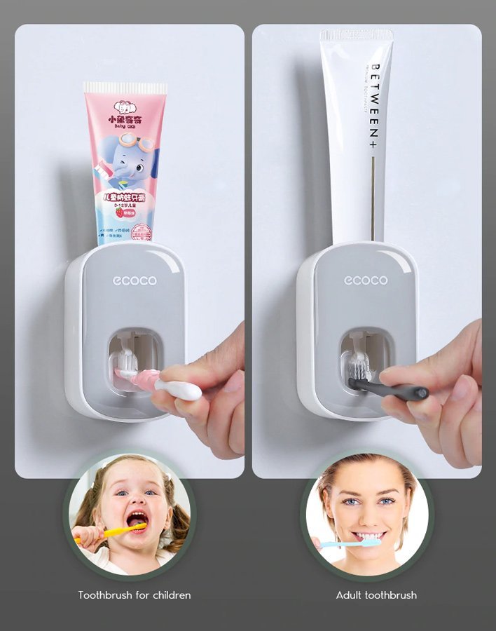Τοποθετείται εύκολα στον τοίχο με αυτοκόλλητη βάση η οποία αποσπάται από τον διανεμητή. Με τον διανεμητή θα βάλετε εύκολα οδοντόκρεμα στην οδοντόβουρτσά σας, σπρώχνοντας την οδοντόβουρτσα στην ειδική εσοχή του διανεμητή.