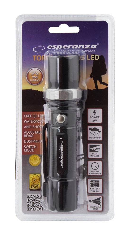 ESPERANZA Φακός Sirius EOT003, Cree Q5 LED, 5W, 250 lumens, μαύρος