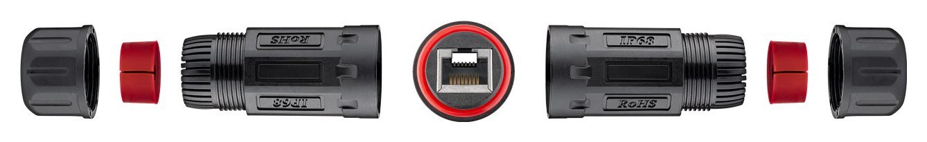 Αδιάβροχος σύνδεσμος καλωδίου RJ45 Cat.6A, ιδανικός για συνδέσεις ethernet σε εξωτερικούς χώρους. Προσφέρει αδιαβροχοποίηση επιπέδου IP68, προστατεύοντας την συνδεσμολογία από σκόνη και νερό. Εγκαθίσταται εύκολα και γρήγορα και είναι συμβατό με καλώδια διαμέτρου 4-8mm.