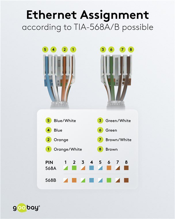 -TIA-568A/B colour-coded RJ45 βύσμα