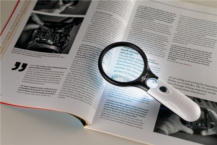 Μεγεθυντικός φακός χειρός με LED φωτισμό της Goobay, ιδανικός για το διάβασμα μικρών γραμματοσειρών σε βιβλία, εφημερίδες, περιοδικά κ.α.