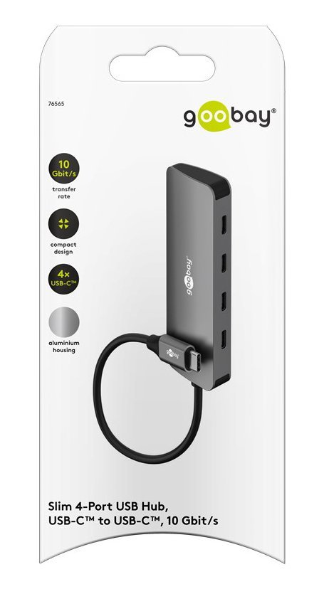 Αυτό το hub της Goobay μπορεί να συνδεθεί με το laptop ή το desktop σας μέσω θύρας USB-C και να επεκτείνει τις θύρες του με 4x USB-C θύρες. Διαφορετικές συσκευές USB, όπως εξωτερικοί σκληροί δίσκοι, card readers, ποντίκια κλπ. μπορούν να συνδεθούν μέσω του hub.
