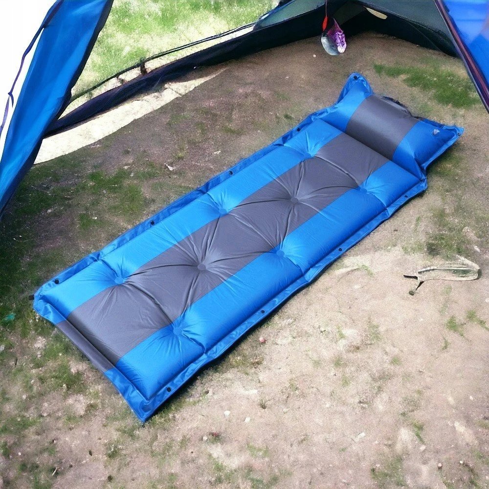 HOME USE αυτοφούσκωτο στρώμα HUH-0237 με μαξιλάρι, μονό, 192x60x3cm, μπλε/γκρι