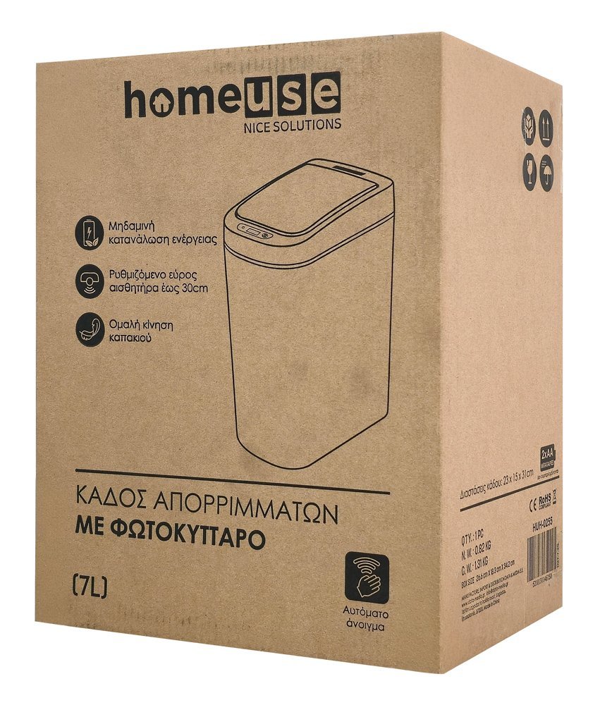 HOME USE κάδος απορριμμάτων HUH-0255 με φωτοκύτταρο, 7lt, λευκός