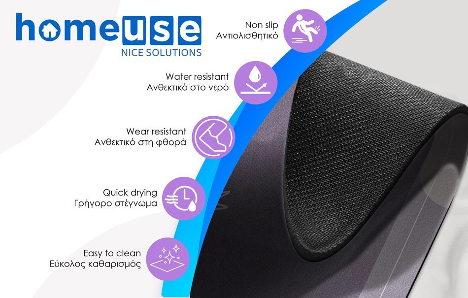 Πατάκι HOME USE για την κουζίνα, με αντιολισθητική επιφάνεια, για επιπλέον σταθερότητα. Είναι κατασκευασμένο από πολυεστέρα με καουτσούκ επιφάνεια στο κάτω μέρος, που προσφέρουν εξαιρετική αντοχή στη φθορά και το νερό.