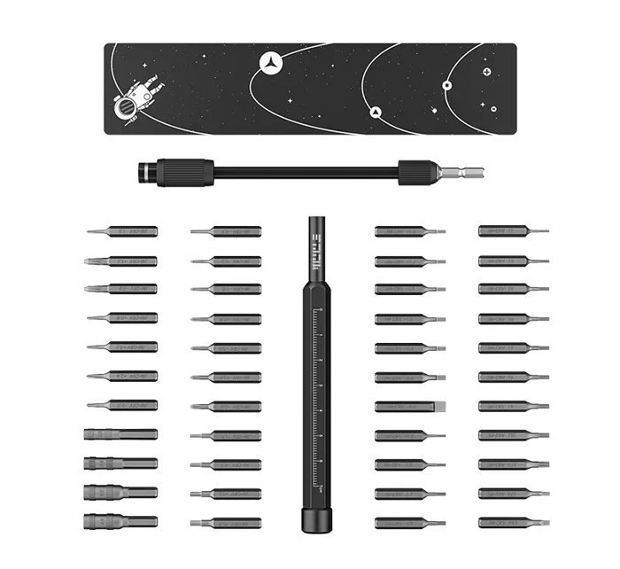 Σετ κατσαβιδιών της Jakemy το οποίο αποτελείται από κατσαβίδι, προέκταση, μαγνητικό φύλλο και 30 διαφορετικές μύτες κατσαβιδιού.