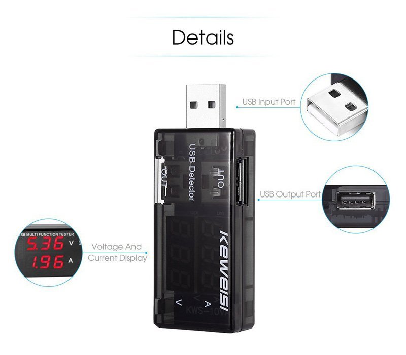 KEWEISI Συσκευή ελέγχου θύρας USB KWS-10VA, 2x USB Output, 3-9V
