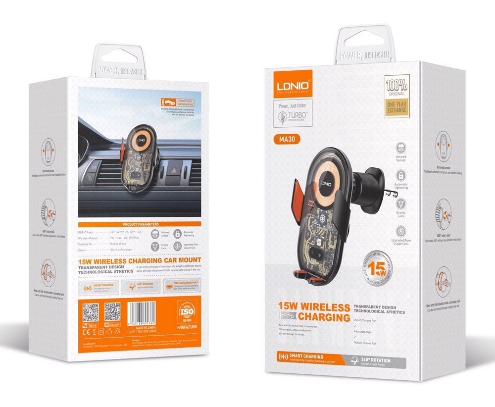 LDNIO ασύρματος φορτιστής & βάση smartphone αυτοκινήτου MA30, 15W, μαύρο