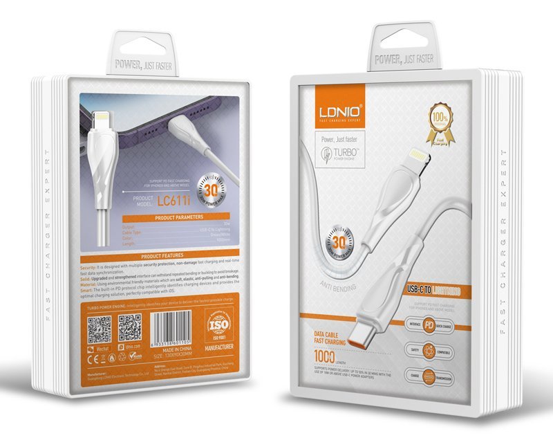 LDNIO καλώδιο Lightning σε USB-C LC611I, 30W PD, 1m, λευκό