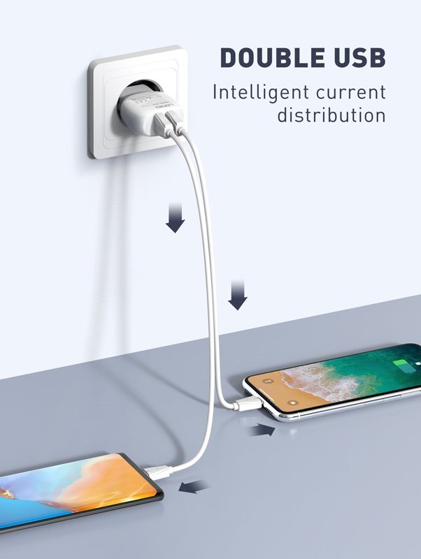 -2x θύρες εξόδου USB, με μέγιστη απόδοση 12W