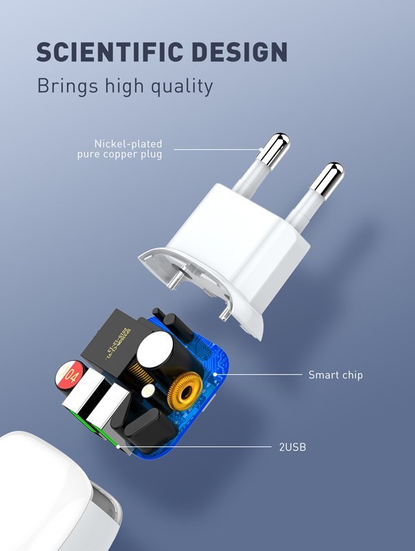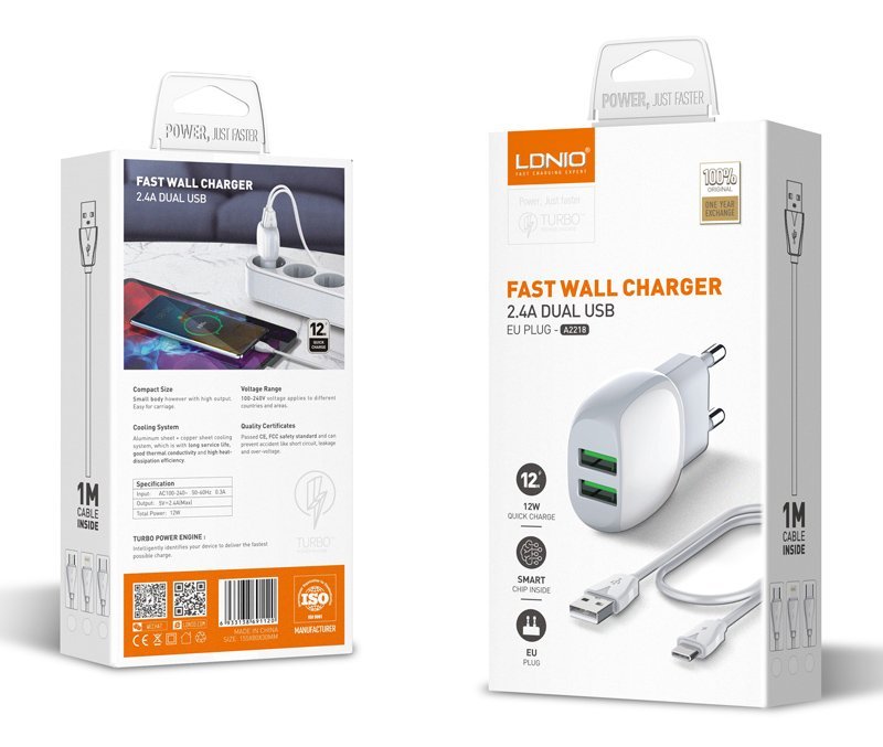 Υψηλής απόδοσης USB φορτιστής τοίχου της LDNIO, κατασκευασμένος από ανθεκτικό υλικό και συμβατός με όλες τις συσκευές που φορτίζουν μέσω USB θύρας.