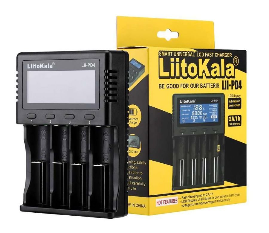 LIITOKALA φορτιστής LII-PD4 για μπαταρίες NiMH/CD, Li-Ion, IMR, 4 slots