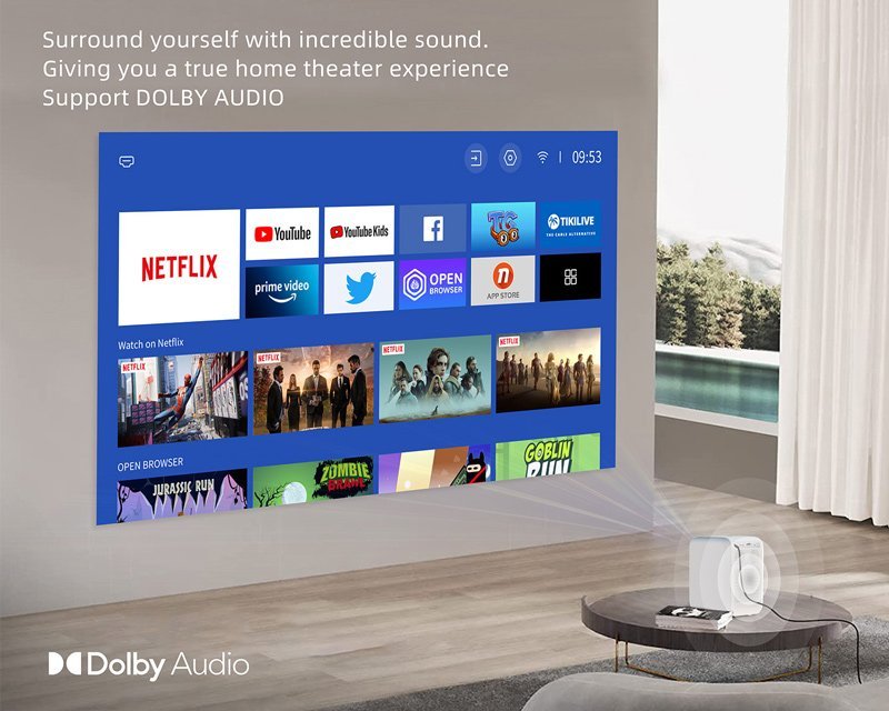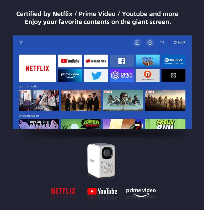 Επιπλέον, ο LED βιντεοπροβολέα KP2 είναι πιστοποιημένος από το Netflix, Prime Video και YouTube, ενώ υποστηρίζει screen mirroring και εφαρμογές όπως Facebook, TikiLIVE, App store κ.α.