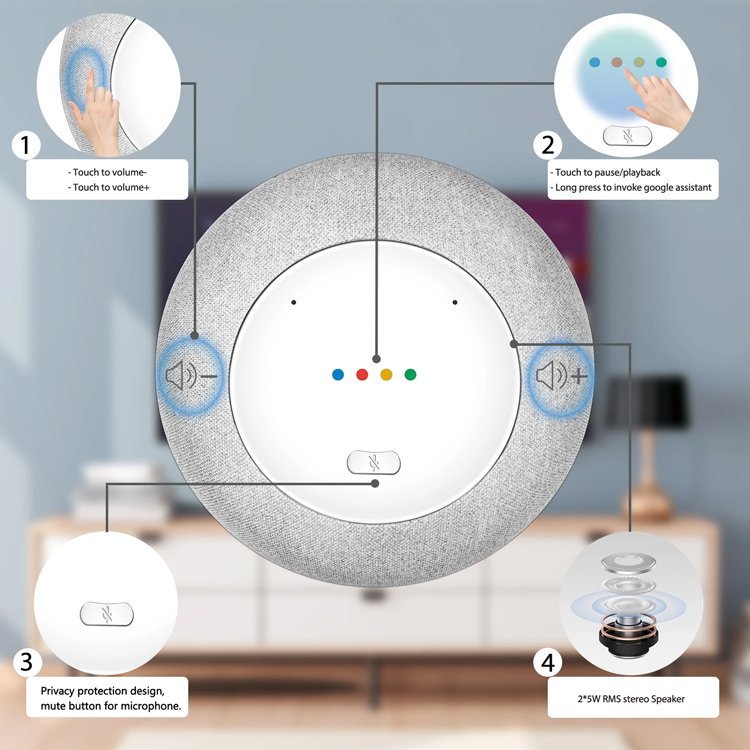 Indicator: 4x RGB_LED (Used to indicate Google Assistant and system functions in different states)