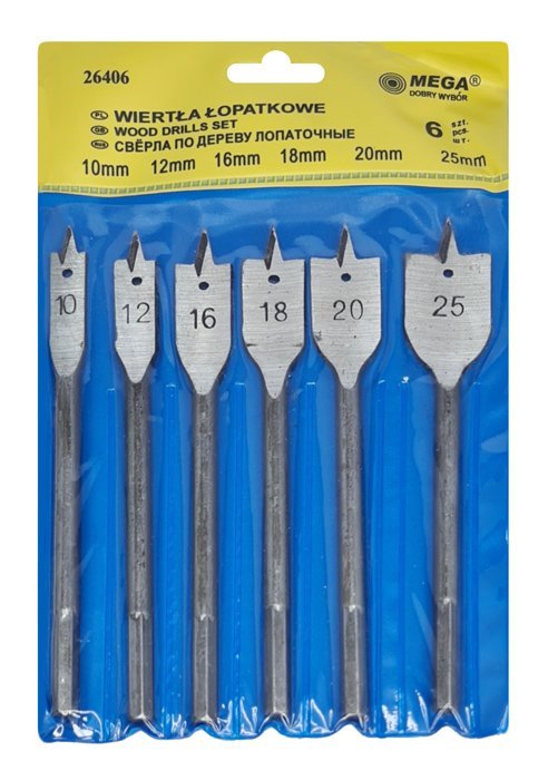 MEGA σετ τρυπάνια ξύλου φτερού 26406, 10-25mm, 6τμχ