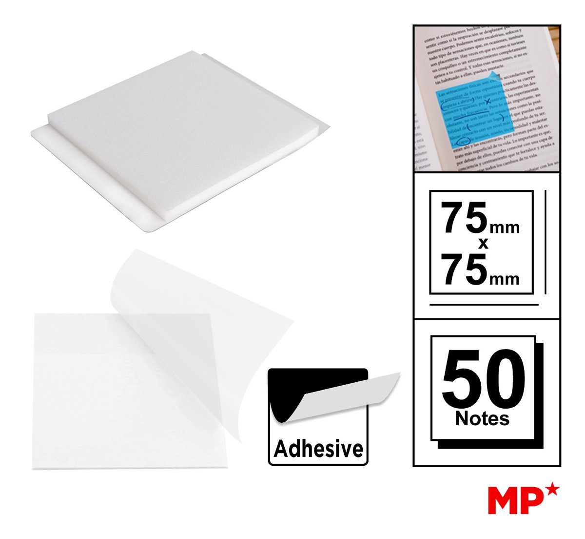 MP αυτοκόλλητα χαρτάκια σημειώσεων PN346-05, 75x75mm, διάφανα, 50τμχ