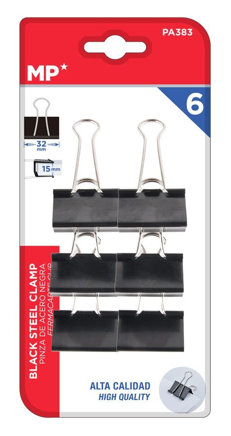 MP μεταλλικό κλιπ συγγράτησης εγγράφων PA383, 32mm, 6τμχ, μαύρα