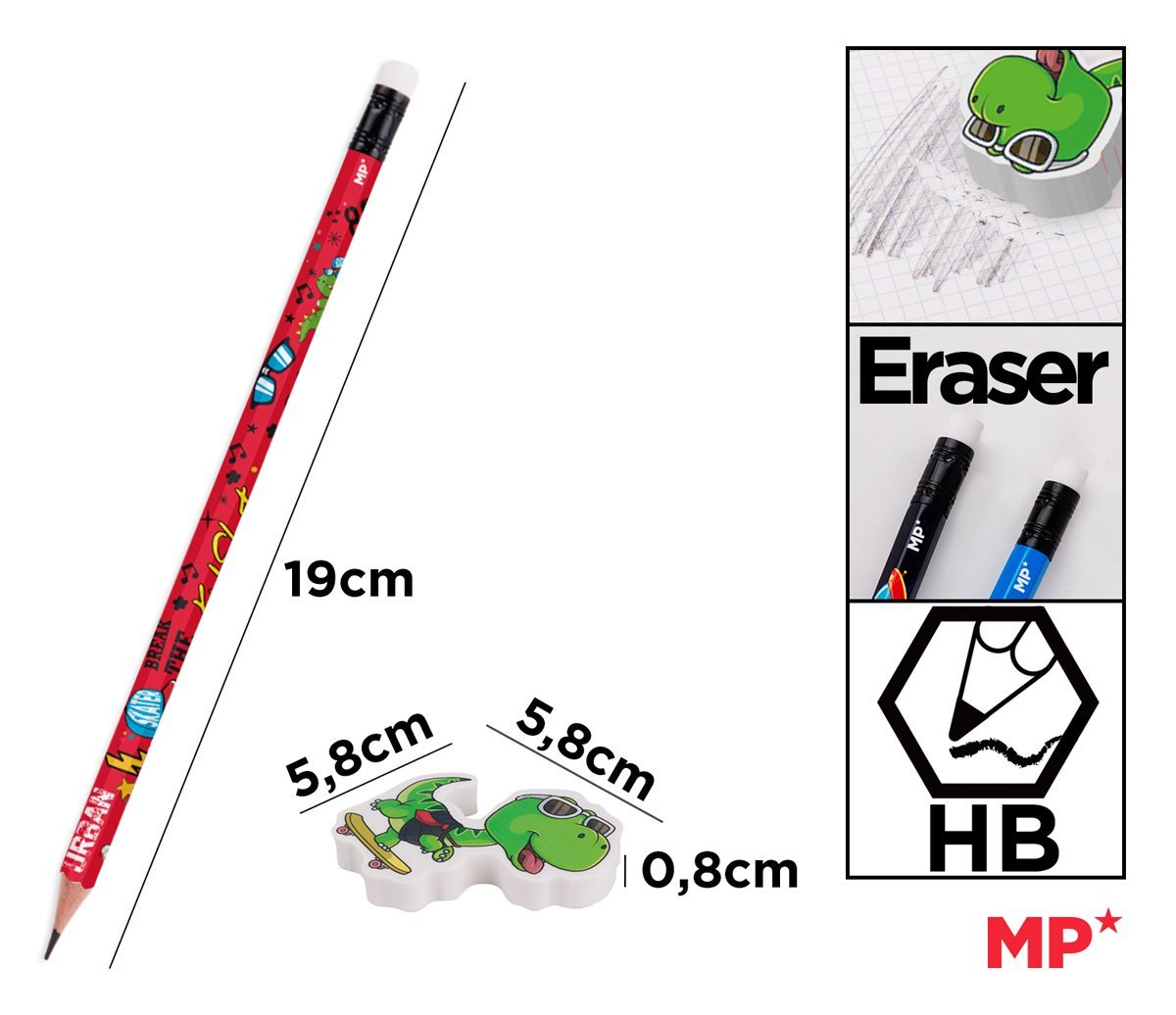 MP σετ ξύλινα μολύβια & γόμα Kid Skate PE356-03, εξάγωνα, HB, 5τμχ
