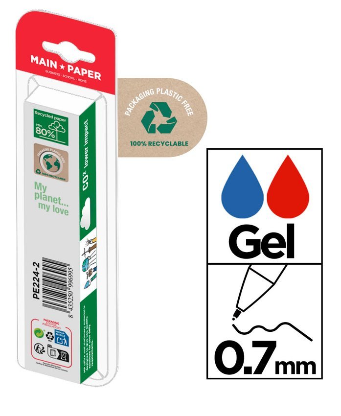 MP στυλό διαρκείας gel PE224-2, 0.7mm, μπλε & κόκκινο, 2τμχ