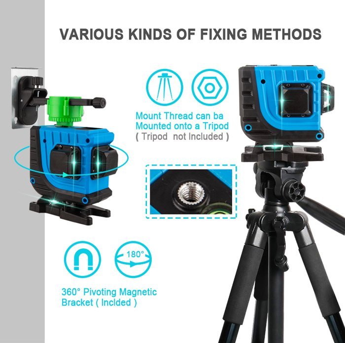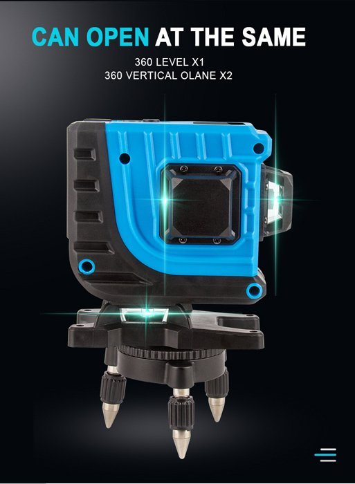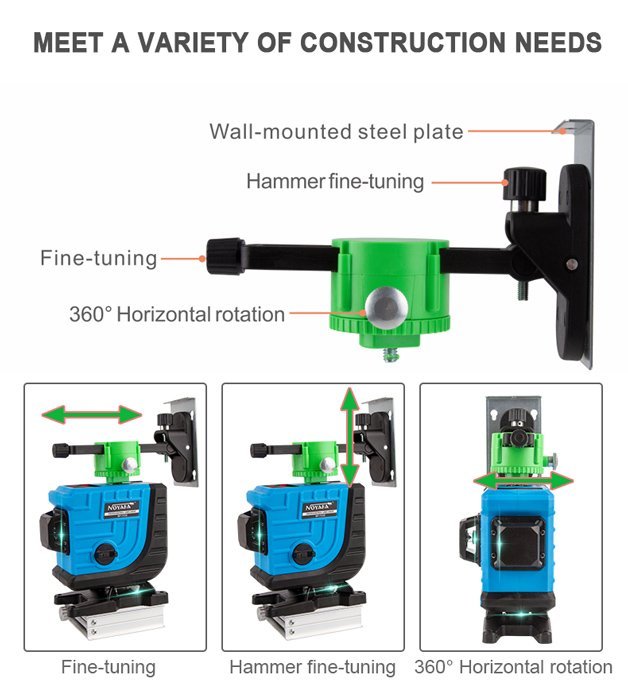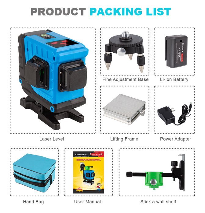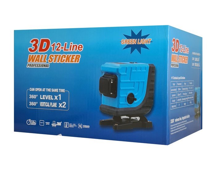 Αυτορυθμιζόμενο γραμμικό αλφάδι laser NF-112G με πράσινη δέσμη 12 ακτίνων 3D. Η εφαρμογή του είναι κατάλληλη για κατασκευή κτιρίων, διακόσμηση σπιτιών, ανακαίνιση, τοποθέτηση επίπλων, δάπεδα και διάταξη έργου.