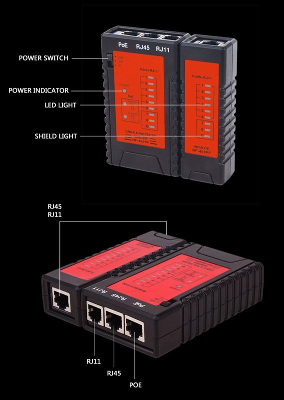 Το NF-468PF είναι ένα εξαιρετικό εργαλείο για τον έλεγχο και την ανίχνευση καλωδίων δικτύου PoE RJ45 και RJ11.