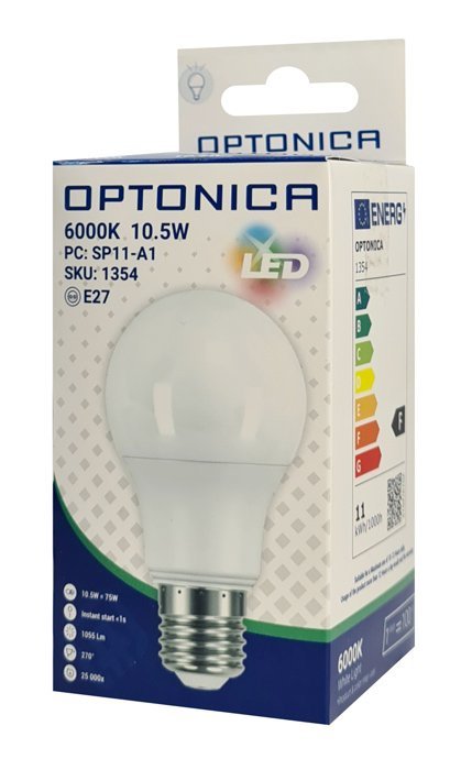 OPTONICA LED λάμπα A60 1354, 10.5W, 6000K, E27, 1055lm