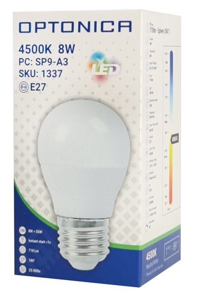 OPTONICA LED λάμπα G45 1337, 8W, 4500K, E27, 710lm