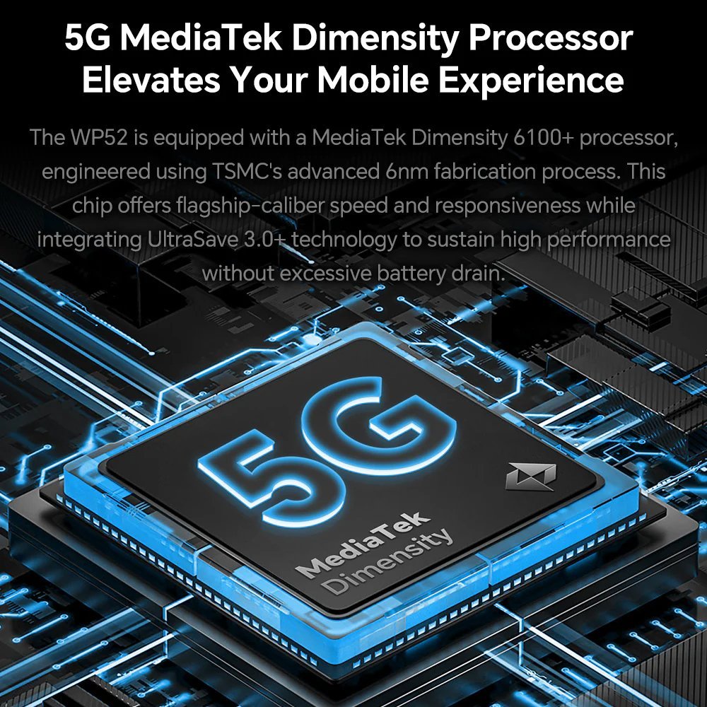 Με πιστοποίηση IP68/IP69K και πρότυπο MIL-STD-810H, το WP52 είναι σχεδιασμένο για να αντέχει σε ακραίες συνθήκες χρήσης και περιβάλλοντα.