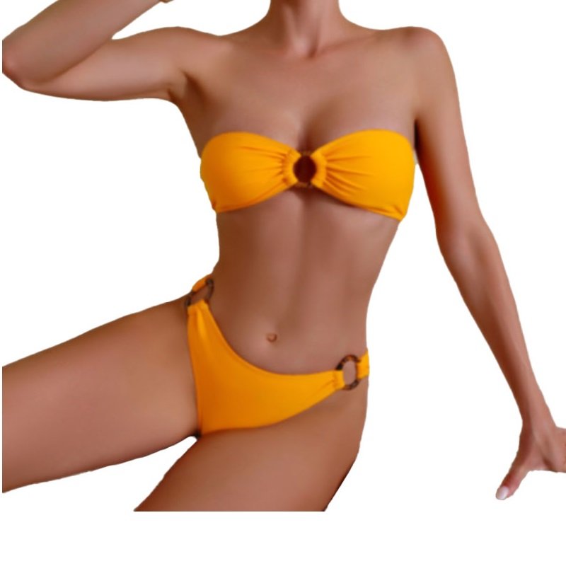 Μοντέρνο εντυπωσιακό μονόχρωμο Μπικίνι σετ με φραμπαλάδες