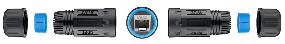 Αδιάβροχος σύνδεσμος καλωδίων δικτύου, ιδανικός για συνδέσεις δικτύου σε εξωτερικούς χώρους. Διαθέτει αδιαβροχοποίηση επιπέδου IP68, προστατεύοντας την συνδεσμολογία από σκόνη και νερό.