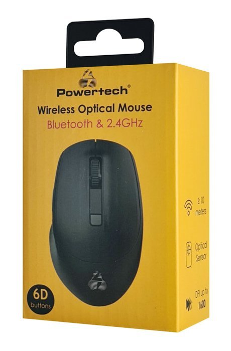 POWERTECH ασύρματο ποντίκι PT-1164, 2.4GHz & Bluetooth, 1600DPI, μαύρο