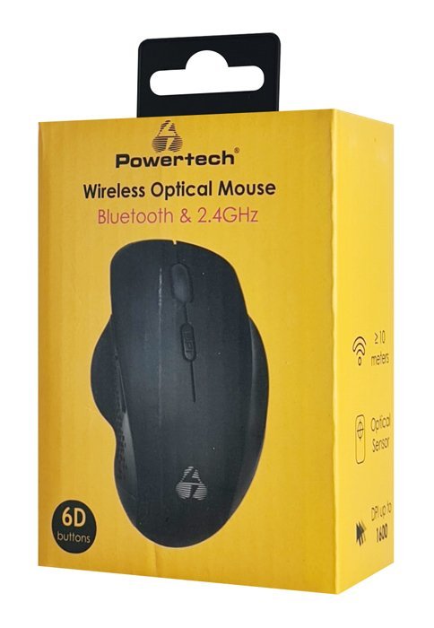 POWERTECH ασύρματο ποντίκι PT-1165, 2.4GHz & Bluetooth, 1600DPI, μαύρο