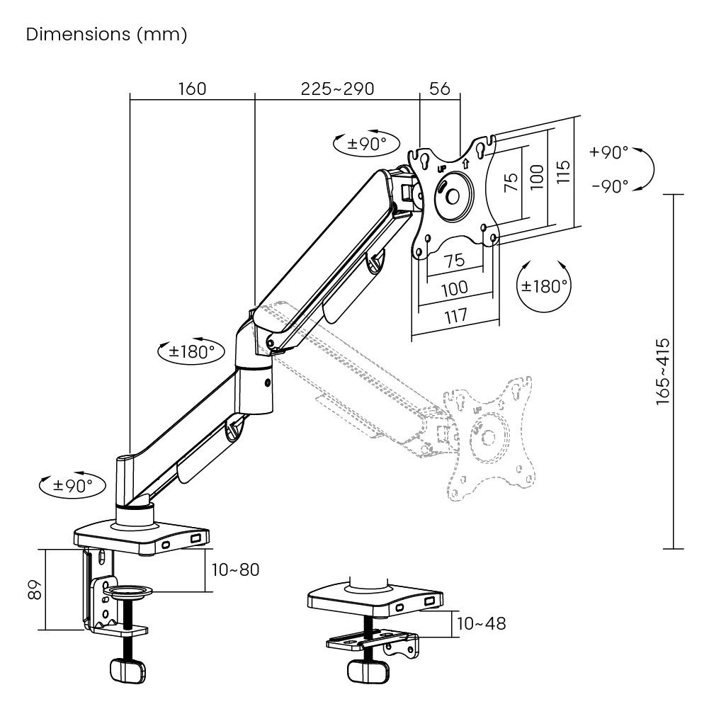 -πλήρης επέκταση βραχίονα: 450mm