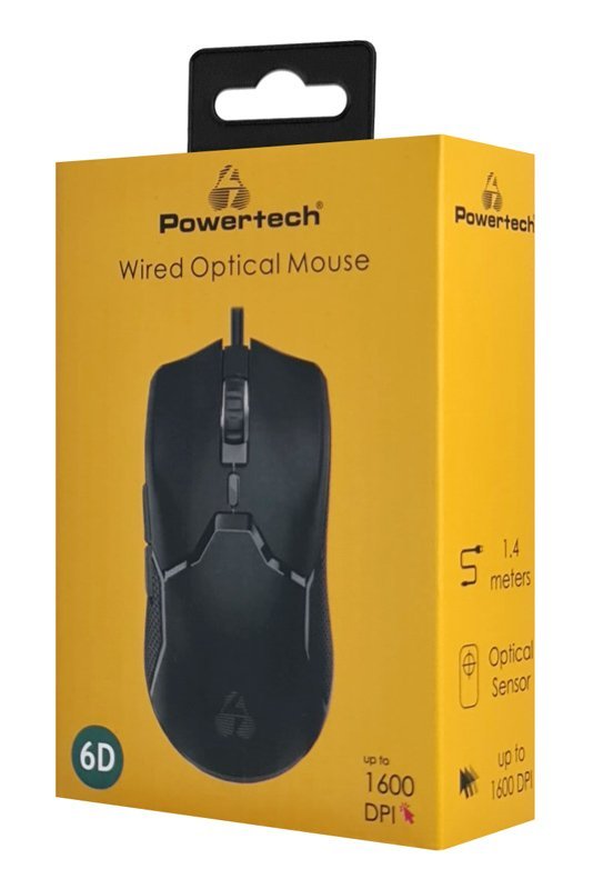 POWERTECH ενσύρματο ποντίκι PT-1289, οπτικό, έως 1600DPI, μαύρο